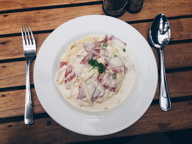 Back again with the new kind food that makes me feeling amazing. you guys must know what is it and what is that, yup this is Fettuccine Alfredo! but why i said this food is amazing? because the taste of the melted cheese in white sauce and the smoked beef is not a joking! it's the taste of a heaven. we usually know that some restaurant just give it a slice smoked beef or just a bit cheesy sauce but in this restaurant its different, all is perfect! the serve, the foods and the place is peace. just want to suggest you to try this one, you wont regret it! |